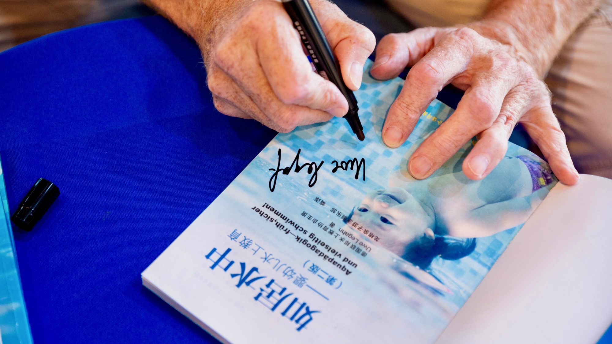Zunächst ist es keineswegs so, dass nur ich mein Wissen über den Schwimmunterricht weitergegeben habe. Das ist sicherlich nach wie vor der Schwerpunkt unserer Kooperation und ich meine, dass diese Fahrtrichtung noch eine Weile die vorwiegende bleiben wird. Dazu sagt mir meine lange Erfahrung, dass das, was ich in über 20 Jahren gelernt habe, auch der talentierteste Pädagoge in China nicht von heut auf morgen in allen Einzelheiten praktizieren kann. Aber dennoch sind die Loongkids-Lehrer inzwischen auf einem sehr, sehr guten Weg. Sie sind bereits heute die chinesischen Experten für das Baby- und Anfangsschwimmen.